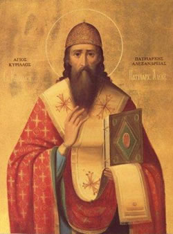 Ἅγιος Κύριλλος ἔζησε κατά τούς χρόνους τοῦ αὐτοκράτορα Θεοδοσίου τοῦ Μικροῦ (408 – 450 μ.Χ.) καί γεννήθηκε περί τό 370 ἢ 375 μ.Χ. στήν Ἀλεξάνδρεια ἀπό εὔπορους γονεῖς τῆς ἑλληνικῆς κοινωνίας τῆς πόλεως. Ἦταν θερμοῦ καί ζωηροῦ χαρακτῆρος, ἀνήσυχος, τολμηρός, ἐνεργητικός καί πολύ δραστήριος. Διακρινόταν γιά τήν εὐστροφία, τήν ταχύτητα καί ἀποφασιστικότητα τῶν ἐνεργειῶν του καί, κυρίως, γιά τήν ἐπιμονή, ὁρμητικότητα καί τό ἀνυποχώρητο στίς ἐπιδιώξεις τῶν σκοπῶν γιά τούς ὁποίους ἀγωνιζόταν. Εἶχε ἰσχυρό τό αἴσθημα τῆς ὀρθοδόξου ἐκκλησιαστικῆς παραδόσεως καί τήν ἀγάπη του γιά τήν εἰρήνη καί ἐκκλησιαστική ἑνότητα, ἡ δέ συναίσθηση τοῦ καθήκοντος καί ὁ ἁγνός ἐνθουσιασμός του γιά τήν ἀλήθεια τόν καθιστοῦσαν ἄφοβο στήν ἐπιτέλεση τῆς διακονίας του καί ἱκανό ἀγωνιστή ὑπέρ τῆς ἀλήθειας μέχρι θανάτου. Γιά ὅλα αὐτά τά χαρίσματα δικαίως θεωρεῖται ὡς ἕνας ἀπό τούς Μεγάλους Πατέρες καί Διδασκάλους τῆς Ἐκκλησίας καί ὁ κατ’ ἐξοχήν ὑπερασπιστής τῆς ἱερᾶς παραδόσεως.
