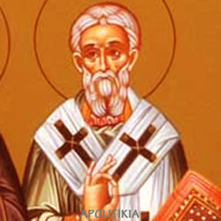 Ἐπί θρόνου ἔνδοξε, ἱερωσύνης καθίσας, καί λεόντων στόματα, τῶν λογικῶν ἀποφράξας, δόγμασιν, ἐν θεοπνεύστοις σεπτῆς Τριάδος, ηὔγασας, φῶς τῇ σῇ ποίμνῃ θεογνωσίας· διά τοῦτο ἐδοξάσθης, ὡς θεῖος μύστης Θεοῦ τῆς χάριτος.