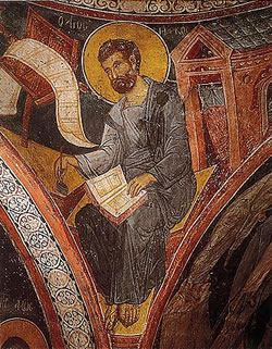 Πέτρῳ τῷ θεόπτῃ μαθητευθείς, τῶν ὑπερκοσμίων, ἐχρημάτισας μυητής· ὅθεν τοῦ Σωτῆρος, ἡμῖν εὐηγγελίσω, ὦ Μᾶρκε θεηγόρε, τήν συγκατάβασιν.