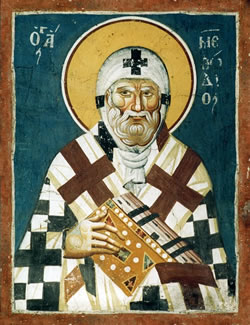 Εὐσεβείας τήν μέθοδον προβαλλόμενος, αἱρετικῶν διαλύεις τάς ἐπινοίας στερρῶς, Ὀρθοδόξων ἡ κρηπίς Πάτερ Μεθόδιε· τήν γάρ Εἰκόνα τοῦ Χριστοῦ, ἀνεστήλωσας τιμᾶν, ὡς θεῖος ἱεροφάντωρ· καί νῦν ἀεί ἐκδυσώπει, ἐλεηθῆναι τάς ψυχάς ἡμῶν.