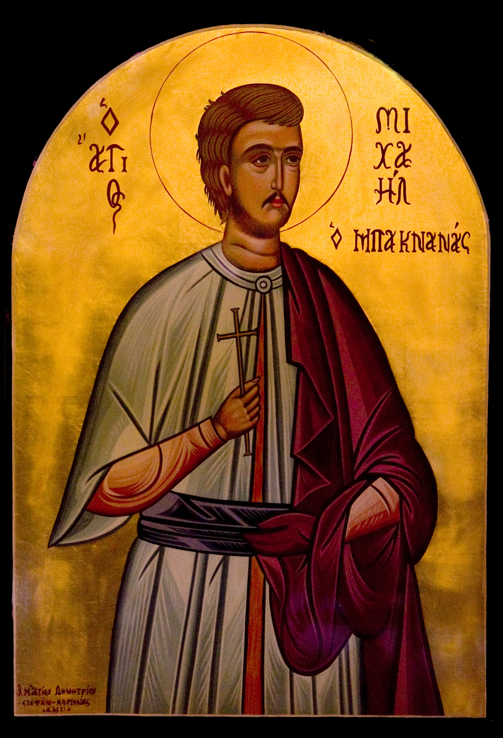 Ἐν ἁπλότητι τρόπων τὸ θεῖον πῦρ, τῆς ἀγάπης Κυρίου ὃ ἐν ψυχῇ, κατεῖχες μακάριε,, ὑπεμφαίνων τρανότατα, ἀκλόνητος ἐδείχθης, ἐχθροῦ ἐπιθέσεσι, μηδόλως καταπτήξας τυράννων φρυάγματα, ὅθεν καὶ τῷ ξίφει, ἐκτμηθεὶς τὸν αὐχένα, Μαρτύρων ἠξίωσαι, τῆς εὐκλείας καὶ χάριτος, Μιχαὴλ ἀξιάγαστε, μεθ’ ὧν ἀεὶ δυσώπει Χριστόν, τῶν πταισμάτων ἄφεσιν δωρήσασθαι, τοῖς ἑορτάζουσι πόθῳ, τὴν ἁγίαν μνήμην Σου.