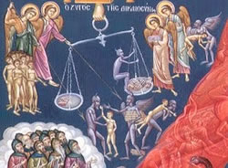 Τότε, σέ ὥρα ἀσθένειας, εἶδε ὄνειρο. Τοῦ φάνηκε ὅτι παρίστατο στήν κρίση τοῦ Θεοῦ, ὁ Ὁποῖος ἄλλους δικαίωνε καί ἄλλους καταδίκαζε. Ἐκείνη τήν ὥρα τῆς κρίσεως εἶδε κοντά του μία ζυγαριά. Στό ἀριστερό μέρος τῆς ζυγαριᾶς ἔβλεπε νά συγκεντρώνονται δαίμονες καί νά ἐναποθέτουν πολλές κακές του πράξεις, ἐνῶ στό δεξιό του ἔβλεπε Ἀγγέλους νά μήν βρίσκουν κάποιο ἄλλο καλό νά ἐναποθέσουν πρός ἰσορροπία τῆς ζυγαριᾶς, παρά μόνο τόν ἄρτο ἐκεῖνο πού πέταξε μέ θυμό κατά τοῦ φτωχοῦ.