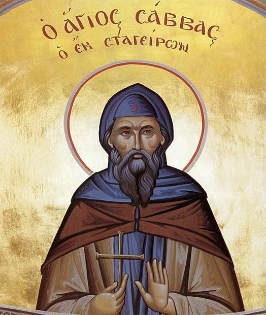 Των Σταγείρων το κλέος και του Άθω το καύχημα, τον Οσιομάρτυρα Σάββα, εν ωδαίς ευφημήσωμεν, ασκήσει και αθλήσει κρατερά ενίκησε τον δόλιον εχθρόν, και κατ’ όναρ ηξιώθη θείας φωνής, προειπούσης το μαρτύριον. Δόξα τω σε δοξάσαντι Χριστώ, δόξα τω σε ενισχύσαντι, δόξα εν υστέροις τοις καιροίς, σε στεφανώσαντι.