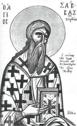 Ἡ ἵδρυση καί ὀργάνωση τοῦ πρώτου Σερβικοῦ κράτους ἀπό τό μέγα ζουπάνο Στέφανο Νεμάνια (1167 – 1169), τόν πατέρα τοῦ Ἁγίου, εἶχε ὡς ἀποτέλεσμα τή συνένωση ὅλων σχεδόν τῶν Σέρβων σέ ἑνιαῖο καί ἀνεξάρτητο ἀπό τή βυζαντινή κυριαρχία κράτος μέ ἐπίκεντρο τή Ρασκία. Ὁ αὐτοκράτορας τοῦ Βυζαντίου Ἰσαάκιος Β’ Ἄγγελος (1185 – 1195) συνῆψε, τό ἔτος 1190, εἰρήνη μέ τό ζουπάνο τῶν Σέρβων. Ἡ ἵδρυση τοῦ κράτους ἀνέδειξε τήν ἀνάγκη ἀναδιοργανώσεως καί τῆς Ἐκκλησίας τῆς Σερβίας, ἡ ὁποία ὑπέφερε ἀπό ἀνεξέλεγκτη δράση τῶν αἱρετικῶν Βογομίλων. Σύμφωνα πρός τίς ἱστορικές εἰδήσεις, ἂν καί ἡ παγίωση τοῦ Χριστιανικοῦ βίου στούς Σέρβους ἦταν ἀναντίρρητη, ἡ ἔλλειψη ἑνιαίας ἐκκλησιαστικῆς διοργανώσεως παρέτεινε τήν σύγχυση δικαιοδοσιῶν καί διευκόλυνε τήν δράση τῶν αἱρετικῶν. Εἶναι χαρακτηριστικό ὅτι ὁ υἱός τοῦ ζουπάνου τῶν Σέρβων Στέφανου ἀποσύρθηκε σέ ἡλικία μόλις δέκα ἕξι ἐτῶν στό Ἅγιον Ὄρος. Ἐκάρη μοναχός στή Μονή Βατοπαιδίου καί ἔλαβε τό ὄνομα Σάββας. Ἀργότερα, περί τό 1195, ἵδρυσε μαζί μέ τόν πατέρα του Στέφανο, πού ἔγινε μοναχός καί ὀνομάστηκε Συμεών († 13 Φεβρουαρίου), τή Μονή τοῦ Χιλανδαρίου μέ χρυσόβουλο τοῦ αὐτοκράτορα Ἀλεξίου Γ’ τοῦ Ἀγγέλου (1195 – 1203).