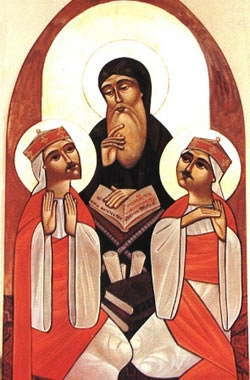 Χαίροις τῆς Αἰγύπτου γόνος σεπτός, Μακάριε Πάτερ, τῶν Ὁσίων ἡ καλλονή· χαίροις θεοφόρε, Μακάριε παμμάκαρ, Ἀλεξανδρείας κλέος, καί θεῖον βλάστημα.