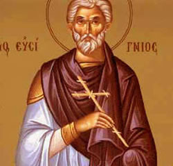 Πίστει ἀναθάλλων τῇ πρός Χριστόν, ἐν γήρατι χαίρων, ἠγωνίσω νεανικῶς, καί τοῦ Παραβάτου, τήν ἄνοιαν αἰσχύνας, μαρτυρικῆς ἐπέβης, δόξης Εὐσίγνιε.