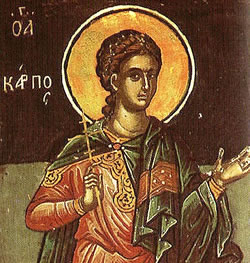 Ἅγιος Ἀπόστολος Κάρπος ἔζησε τόν 1ο αἰώνα μ.Χ. καί καταγόταν ἀπό τήν Τρωάδα τοῦ Ἑλλησπόντου. Φιλοξένησε στήν οἰκία του τόν Ἀπόστολο Παῦλο καί ἔγινε βοηθός αὐτοῦ στό κήρυγμα τοῦ Εὐαγγελίου καί κομιστής τῶν ἐπιστολῶν πού ἔστειλε ὁ Παῦλος πρός τίς Ἐκκλησίες.