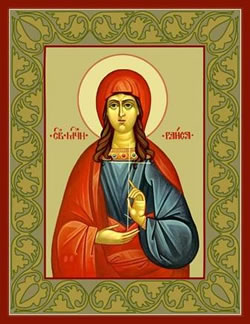 Ὅταν κάποτε πῆγε στήν πηγή, μαζί μέ ἄλλες παρθένες, γιά νά φέρει νερό, εἶδε πλῆθος χριστιανῶν τούς ὁποίους εἶχε δεμένους ὁ ἡγεμόνας Λουκιανός. Τότε καί αὐτή πῆγε καί ἔσμιξε μέ τό πλῆθος αὐτό. Ἀμέσως ο δεσμοφύλακας, τή συμβούλεψε νά ἀπομακρυνθεῖ γιά νά μή χάσει τή ζωή της μαζί μέ τούς ὑπόλοιπους. Όμως η Ραΐς, ὄχι μόνο δέν ἔφυγε, ἀλλά μέ εὐτολμία παρουσιάστηκε μπροστά στόν ἡγεμόνα, περιγέλασε τούς θεούς του καί τόν ἔφτυσε κατάμουτρα, ἐπειδή καί αὐτός εἰρωνεύτηκε τόν Χριστό.