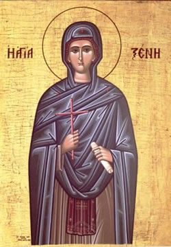 Ἐν σοῖ Μῆτερ ἀκριβῶς διεσώθη τό κατ’ εἰκόνα, λαβοῦσα γάρ τόν σταυρόν, ἠκολούθησας τῷ Χριστῷ, καί πράττουσα ἐδίδασκες, ὑπερορᾶν μέν σαρκός, παρέρχεται γάρ, ἐπιμελεῖσθαι δέ ψυχῆς, πράγματος ἀθανάτoυ, διό καί μετά Ἀγγέλων συναγάλλεται, Ὁσία Ξένη τό Πνεῦμα σου.