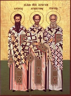 Ἡ ἑορτή αὐτῆς τῆς Συνάξεως τοῦ Μεγάλου Βασιλείου, τοῦ Γρηγορίου τοῦ Θεολόγου καί τοῦ Ἰωάννου τοῦ Χρυσοστόμου, ἀποτελεῖ τό ὁρατό σύμβολο τῆς ἰσότητας καί τῆς ἑνότητας τῶν Μεγάλων Διδασκάλων, οἱ ὁποῖοι δίδαξαν μέ τόν ἅγιο βίο τους τό Εὐαγγέλιο τοῦ Χριστοῦ. Εἶναι ἐκεῖνοι, οἱ ὁποῖοι ἐξ’ αἰτίας τῆς ταπεινώσεώς τους μπροστά στήν ἀλήθεια, ἔχουν λάβει τό χάρισμα νά ἐκφράζουν τήν καθολική συνείδηση τῆς Ἐκκλησίας καί ὅ,τι διδάσκουν δέν εἶναι ἁπλῶς δική τους σκέψη ἢ προσωπική τους πεποίθηση, ἀλλά εἶναι ἐπιπλέον ἡ ἴδια ἡ μαρτυρία τῆς Ἐκκλησίας, γιατί μιλοῦν ἀπό τό βάθος τῆς καθολικῆς της πληρότητας.