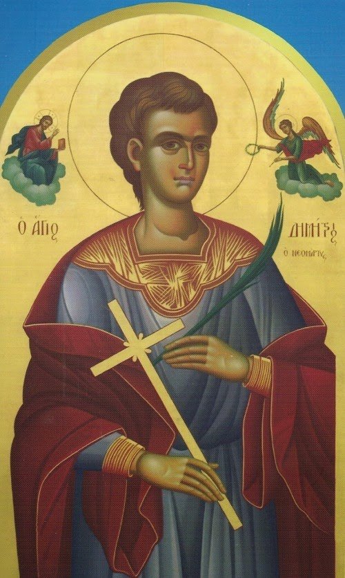 Ἅγιος Νεομάρτυς Δημήτριος γεννήθηκε τό ἔτος 1780 στό Παλαιόκαστρο τῆς Χίου ἀπό γονεῖς εὐσεβεῖς, τόν Ἀπόστολο καί τήν Μαρουλοῦ. Σέ νεαρή ἡλικία ἦρθε στήν Κωνσταντινούπολη καί ἐργαζόταν πλησίον τοῦ ἀδελφοῦ του Ζαννῆ, πού ἦταν ἔμπορος. Μνηστευθείς ὅμως μέ μία νέα, χωρίς νά τό γνωρίζει ὁ ἀδελφός του, ἀποπέμφθηκε ἀπό τήν ἐργασία του.