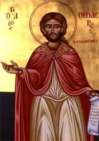 Ὁ Θεόδωρος ἦταν ζωγράφος καί ἐργαζόταν στά ἀνάκτορα. Οἱ Τοῦρκοι προσπάθησαν νά τόν προσελκύσουν στήν μουσουλμανική θρησκεία καί τό πέτυχαν. Ὁ Ἅγιος ὅμως ἀνένηψε καί μετανόησε γι’ αὐτό. Ἔτσι κατέφυγε στή Χίο καί ἔμεινε κοντά σέ ἕνα Πνευματικό Πατέρα, τόν Ἅγιο Μακάριο τό Νοταρᾶ († 17 Ἀπριλίου). Ἐκεῖ καθημερινά μελετοῦσε τά μαρτύρια τῶν Ἁγίων καί βιβλία ψυχωφελή καί κατανυκτικά. Ἀπό μέρα σέ μέρα αὐξανόταν σέ αὐτόν ἡ κατάνυξη καί ὁ πόθος τοῦ μαρτυρίου. Ἔτσι ἔφθασε στή Μυτιλήνη, ὅπου ἐνώπιον τῶν ἀρχῶν ὁμολόγησε τήν πίστη του στόν Χριστό καί ἀποκήρυξε τήν μωαμεθανική θρησκεία. Ὁ Ἅγιος Θεόδωρος συλλαμβάνεται, φυλακίζεται καί πάσχει τούς βασανισμούς, τούς δαρμούς, τούς λακτισμούς καί ἄλλα ἀπάνθρωπα μαρτύρια. Τοῦ ἔδεσαν τά πόδια σέ ξύλο καί τοῦ πέρασαν στό λαιμό βαριά ἁλυσίδα. Τοῦ τύλιξαν τό κεφάλι μέ ἕνα σχοινί καί τοῦ ἔβαλαν στούς κροτάφους δύο κομμάτια ἀπό τοῦβλο. Ἔπειτα μέ ἕνα ξύλο ἔστριβαν τό σχοινί καί ἕσφιγγαν τήν κεφαλή του τόσο πολύ, μέχρι πού βγῆκαν οἱ βολβοί τῶν ὀφθαλμῶν του ἔξω ἀπό τόν τόπο τους. Ὁ δέ τοῦ Χριστοῦ στρατιώτης ἔλεγε: «Χριστιανός, Χριστιανός, Χριστιανός εἶμαι».