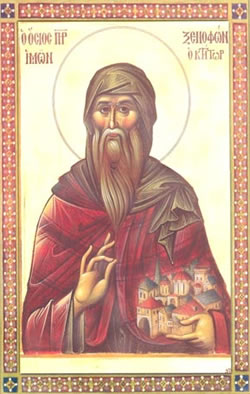 Ὅσιος Ξενοφῶν ἔζησε κατά τά τέλη τοῦ 10ου αἰῶνος μ.Χ. καί ἀσκήτεψε στό Ἅγιον Ὄρος. Καταγόταν ἀπό περιφανή καί πλούσια οἰκογένεια καί εἶχε σπουδαία μόρφωση. Ὑπῆρξε σύγχρονος τοῦ Ἁγίου Ἀθανασίου τοῦ Ἀθωνίτου, τοῦ δομήτορος τῆς Μεγίστης Λαύρας, στό δέ βίο του μαρτυρεῖται ὅτι ὁ Ὅσιος Ἀθανάσιος θεράπευσε τόν ἀδελφό τοῦ Ὁσίου Ξενοφῶντος, Θεόδωρο, ὁ ὁποῖος ἔπασχε ἀπό τήν ἀνίατη νόσο τοῦ καρκίνου.