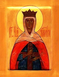 Ἡ δέησή της εἰσακούσθηκε. Δύο ἡμέρες πρίν τήν θανάτωση τοῦ Μεγαλομάρτυρα Γεωργίου, τό ἔτος 303 μ.Χ., παρέδιδε τήν τελευταία της πνοή στή φυλακή. Τό παράδειγμα τῆς βασίλισσας ἀκολούθησαν καί οἱ τρεῖς ἀπό τούς ἀκόλουθούς της, ὁ Ἀπολλώ, ὁ Ἰσαάκιος καί ὁ Κοδράτος. Τίμιοι καί ἐνάρετοι ὑπηρέτες, ἀφοσιωμένοι ἀπό καρδιά στήν αὐτοκράτειρά τους, τῆς ὁποίας γνώριζαν τήν ἀγαθότητα, σκέφθηκαν ὅτι ἡ ἀπόφασή της καί ἡ πίστη της στόν Χριστό ἔπρεπε νά τούς κάνει νά ἐξετάσουν καί αὐτοί χωρίς προκατάληψη τήν πίστη στόν ἀληθινό Θεό καί νά κανονίσουν ἀναλόγως τή διαγωγή τους στό μέλλον. Πῆγαν λοιπόν σέ ἕναν Χριστιανό ἱερέα, τόν ἄκουσαν καί ἀποχώρησαν ἀπό τό σπίτι του ἔνθερμοι πιστοί, φωτισμένοι ἀπό τή Χάρη τοῦ Παρακλήτου, μέ τήν ἀπόφαση νά ἀκολουθήσουν τό παράδειγμα τῆς βασίλισσάς τους καί σύντομα ήλθε η ἡμέρα να ὁμολογήσουν καί αὐτοί τήν πίστη τους.