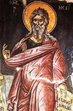 Προφήτης Ἡσαΐας, υἱός τοῦ Ἀμώς, γεννήθηκε στά Ἱεροσόλυμα περί τό 774 π.Χ. Ὑπῆρξε ὁ πρῶτος μεταξύ τῶν τεσσάρων μεγάλων Προφητῶν, ὁ λαμπρότερος καί μεγαλοφωνότερος ἀπό αὐτούς. Τό ὄνομα Ἡσαΐας, ἑβραϊστί Γιασιαγιάχου, σημαίνει «ὁ Θεός σώζει».