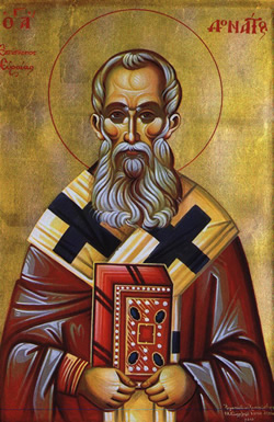 Εὐροίας ποιμένα σε, καί τῆς Ἠπείρου πυρσόν, ἡ χάρις ἀνέδειξεν, ὡς Ἱεράρχην σοφόν, Δονᾶτε μακάριε· θαύμασι γάρ ἐκλάμψας, καί λαμπρότητι βίου, νέμεις τοῖς σέ τιμῶσι, πᾶσαν ἔνθεον δόσιν· διό τῇ προστασίᾳ σου, Πάτερ προστρέχομεν.