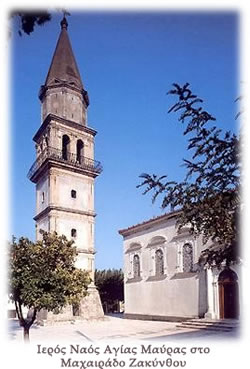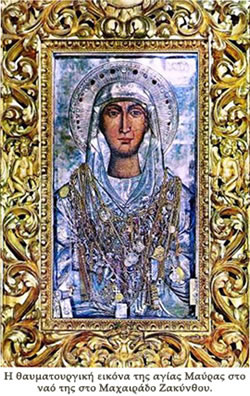 Πρόκειται για διπλό θαύμα που έγινε στην Ζάκυνθο, στο χωριό Μαχαιράδο ή Μαχαιράδες. Εκεί υπάρχει ναός προς τιμήν των δύο Αγίων και μία θαυματουργός εικόνα της Αγίας Μαύρας. Το πρώτο θαύμα αναφέρεται σε μια δαιμονισμένη γυναίκα, που το ακάθαρτο πνεύμα την έσπρωχνε πολλές φορές να πνιγεί στη θάλασσα. Οι συγγενείς της κατέφυγαν στη χάρη των Αγίων Τιμοθέου και Μαύρας και για να την προστατεύσουν από τις ξαφνικές κρίσεις, που την έπιαναν, την είχαν δέσει μπροστά στην εικόνα των Αγίων. Κάποια μέρα όμως, που έλειπαν οι συγγενείς της γυναίκας, εκείνη κατάφερε να λυθεί από τα δεσμά της και το δαιμόνιο την οδήγησε και την έριξε μέσα σ' ένα βαθύ πηγάδι που υπήρχε κοντά στον ναό. Εκεί έμεινε περισσότερο από τρεις ώρες χωρίς καμία βοήθεια. Οι συγγενείς της τρόμαξαν όταν είδαν ότι είχε φύγει και άρχισαν να την ψάχνουν παντού για να την βρούν. Στο τέλος, την ανακάλυψαν μέσα στο πηγάδι όπου έστεκε όρθια χωρίς να κρατιέται από πουθενά και χωρίς να βραχεί καθόλου από το νερό του πηγαδιού.