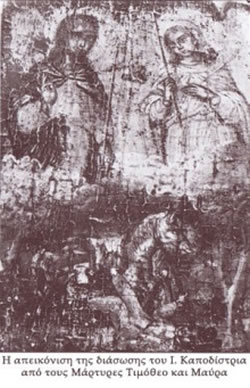 Οι Άγιοι Τιμόθεος και Μαύρα διασώζουν τον Ιωάννη Καποδίστρια.