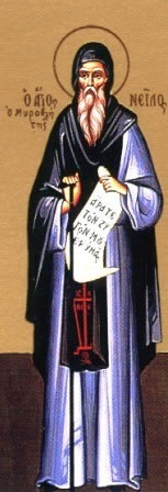 Ἀργότερα ὁ Ὅσιος Νεῖλος, γιά μεγαλύτερη ἄσκηση, κατέφυγε σέ σπήλαιο πού βρισκόταν σέ πολύ ἀπόκρημνο βράχο, ὅπου, ἀφοῦ ἀνήγειρε μικρό ναό, παρέμεινε ἀσκούμενος καί νυχθημερόν προσευχόμενος καθ’ ὅλο τόν ὑπόλοιπο βίο αὐτοῦ.