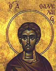 Μαρτυρίου ἀνύσας τόν ἀγῶνα Θαλλέλαιε, ᾔσχυνας εἰδώλων τήν πλάνην, τῇ γενναίᾳ ἀθλήσει σου· καί ὤφθης ἰαμάτων θησαυρός, παρέχων τάς ἰάσεις δωρεάν, τοῖς προστρέχουσιν ἐν πίστει τῷ σῷ ναῷ καί πόθῳ ἀνακράζουσι· δόξα τῷ δεδωκότι σοι ἰσχύν, δόξα τῷ σέ θαυμαστώσαντι, δόξα τῷ ἐνεργοῦντι διά σοῦ, πᾶσιν ἰάματα.