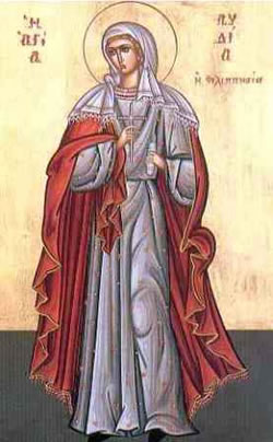 Στήν ὄχθη τοῦ ποταμοῦ Ζυγάκτη, ἔξω ἀπό τά τείχη τῶν Φιλίππων, ἡ θεοσεβής Λυδία, μαζί μέ ἄλλες γυναῖκες, ἄκουσε προσεκτικά τή χριστοκεντρική διδασκαλία τοῦ Παύλου καί μέ ανοικτή τή φωτισμένη καρδιά της ἀποδέχθηκε τή σωτήρια διδασκαλία. Ἀμέσως κατέβηκε στά νερά τοῦ νέου Ἰορδάνου καί βαπτίσθηκε μαζί μέ ὅλα τά μέλη τῆς οἰκογένειάς της. Πανηγυρικά καί ἔμπρακτα ὁμολογεῖ τήν πίστη της στόν Χριστό καί ἡ ὁμολογία ἐπιβραβεύεται μέ τήν ἀποστολική πράξη τῆς βαπτίσεως καί τῆς ἐπιθέσεως τῶν χειρῶν ἐπάνω στούς βαπτισθέντες, γιά νά μεταδοθοῦν οἱ δωρεές τοῦ Ἁγίου Πνεύματος καί νά ξεκινήσει ἡ ἐφαρμογή στό βίο τους, ὅλων ἐκείνων πού εἶναι ἀληθινά, σεμνά, δίκαια, ἁγνά, ἀγαπητά καί ἡ ἐπιδίωξη ὁποιασδήποτε ἀρετῆς καί ὁποιουδήποτε ἐπαίνου.