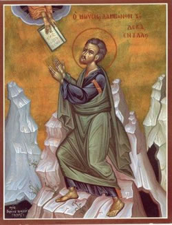 Τόν χρηματισθέντα ἐν τῷ Σινᾷ, καί ἐξαγαγόντα, ἐξ Αἰγύπτου τόν Ἰσραήλ, τόν ὑπερκοσμίων, ἐπόπτην θεαμάτων, Μωσέα τόν θεόπτην, ὕμνοις τιμήσωμεν.
