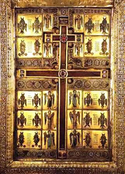 Ὅλος ἡλιόμορφος ὁ Σταυρός, φέγγει ἀπροσίτῳ, ἀναλάμψας ἐν τῇ Σιών, τήν τοῦ Σταυρωθέντος, Ἀνάστασιν κηρύττει, δι’ ἧς ἐκ τῆς κακίας, πάντες ἀνέστημεν.
