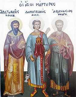 Ἅγιος Μάρτυς Ἀθανάσιος ἦταν ἀναγνώστης τῆς Ἐκκλησίας καί ὑπέστη μαρτυρικό θάνατο, τό 302 μ.Χ., κατά τούς διωγμούς ἐπί Μαξιμιανοῦ, ἀφοῦ ὁμολόγησε τόν Χριστό, στή Σαλαμίνα τῆς Κύπρου, τμηθείς τήν κεφαλή. Μαζί του ἐμαρτύρησαν ὁ πρεσβύτερος Ἀριστοκλῆς καί ὁ διάκονος Δημητριανός.