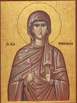 Χαίροις Φεβρωνία πανευκλεής, Ὁσίων ἡ δόξα, καί Μαρτύρων ἡ καλλονή· ἐν γάρ ἀμφοτέροις, ἀθλήσασα νομίμως, εἰκότως καί βραβείων, διπλῶν ἠξίωσαι.
