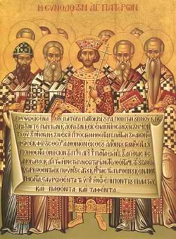 Χαίρετε Πατέρες πανευκλεεῖς, οἱ τοῦ Νεστορίου, καταισχύναντες τήν φωνήν, καί ἐν τῇ Συνόδῳ, τῇ Τρίτῃ τόν Σωτῆρα, καί τήν τεκοῦσαν Τοῦτον, λαμπρῶς κηρύξαντες.