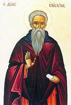 Θείαν ἄσκησιν, στερρῶς ἀνύσας, εὐηρέστησας, Χριστῷ ὁσίως, Θεοφόρε παμμάκαρ Ἐπίκτητε. Καὶ δοξασθεῖς τῇ τοῦ Πνεύματος χάριτι, ἡμᾶς λύτρωσε κινδύνων καὶ θλίψεων. Πάτερ ὅσιε, Χριστὸν τὸν Θεὸν ἱκέτευε, δωρήσασθαι ἡμῖν τὸ μέγα ἔλεος.